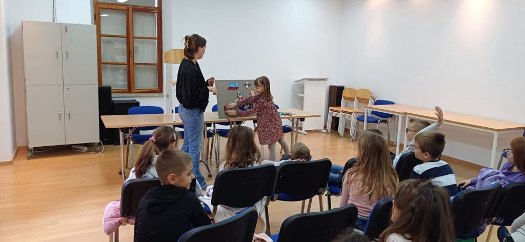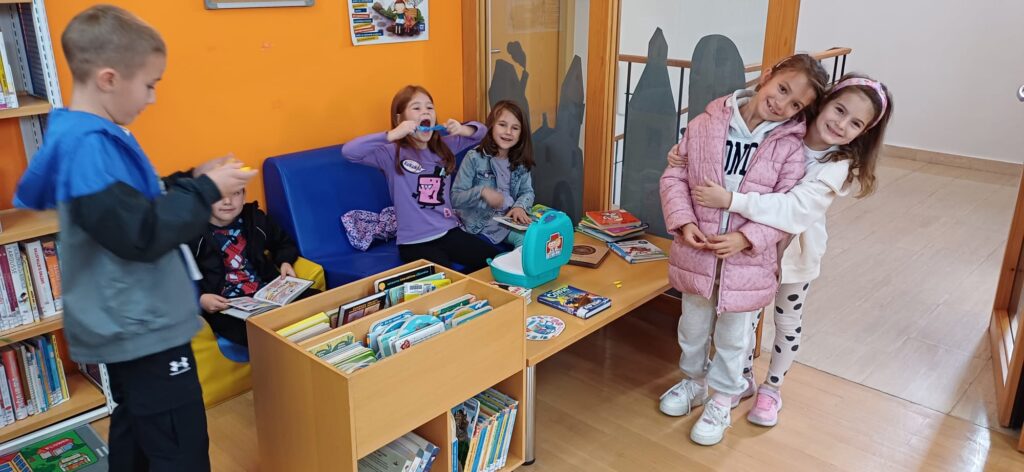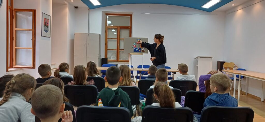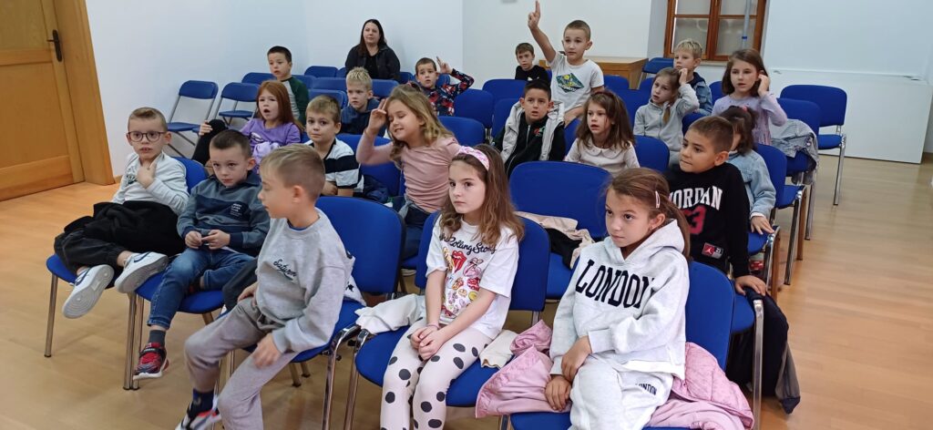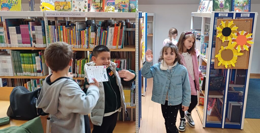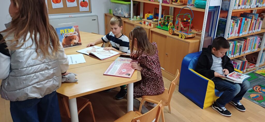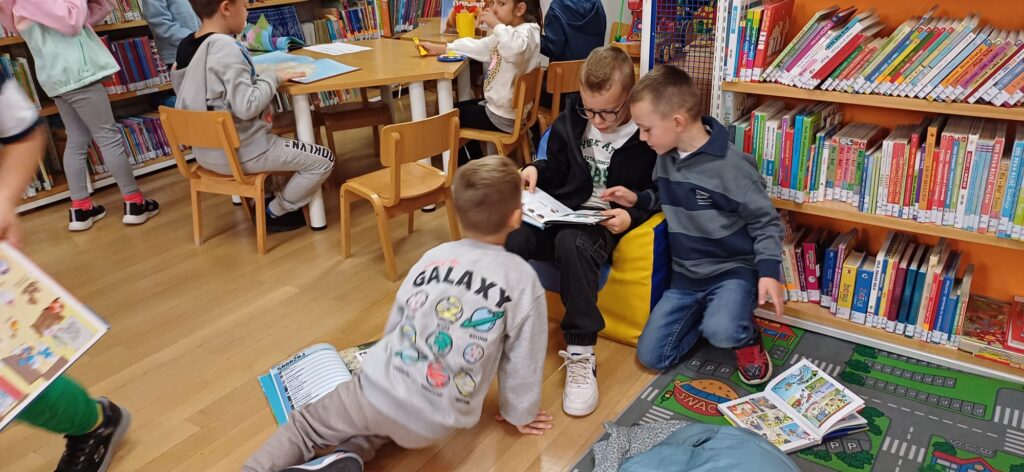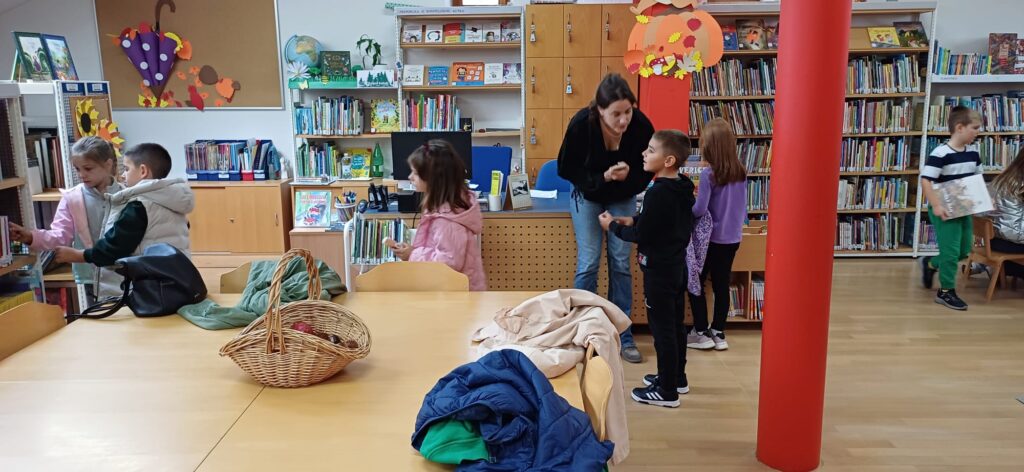 Povodom Mjeseca hrvatske knjige učenici 1.b razreda sa svojom učiteljicom posjetili su Ogranak gradske knjižnice „Aleksandar Stipčević” u Arbanasima. Pažljivo su slušali i uživali u priči na filcu “Mačak Puf u knjižnici”. Potom su razgledali prostor knjižnice, a najviše vremena su proveli na dječjem odjelu istražujući knjige, slikovnice i stripove koji su ih najviše zanimali.