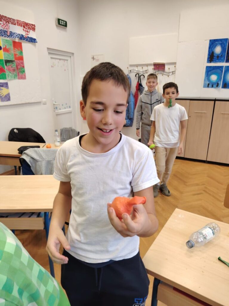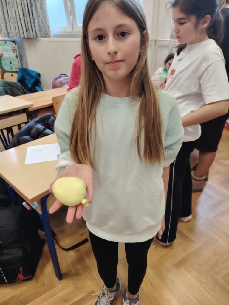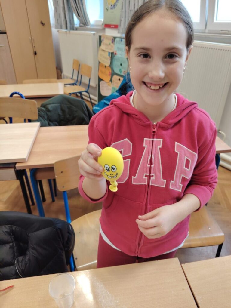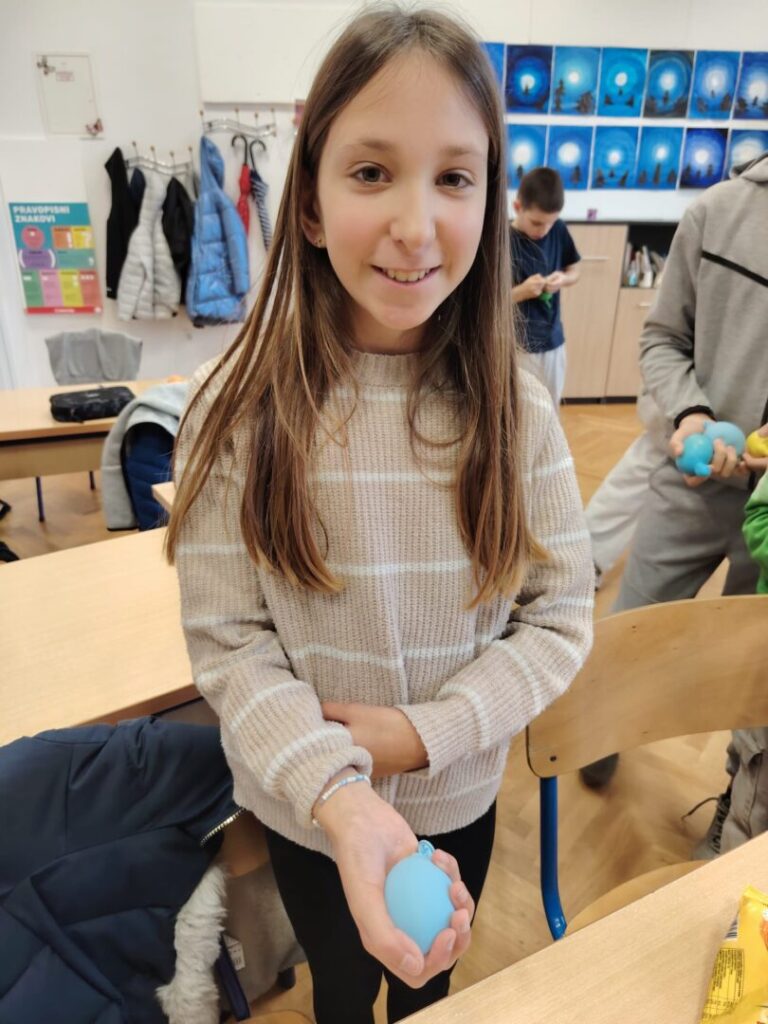 Učenici 4.c razreda sudjelovali su u zanimljivoj STEM radionici na temu izrade antistres loptica. Tijekom radionice upoznali su se s osnovnim znanstvenim principima poput elastičnosti, tlaka i svojstava materijala, a stečeno znanje primijenili su u praktičnom radu. Koristeći jednostavne materijale, sami su izradili svoje antistres loptice te pritom razvijali kreativnost, finu motoriku i timski rad. Radionica je bila poučna, zabavna i potaknula je učenike na istraživanje i učenje kroz iskustvo.