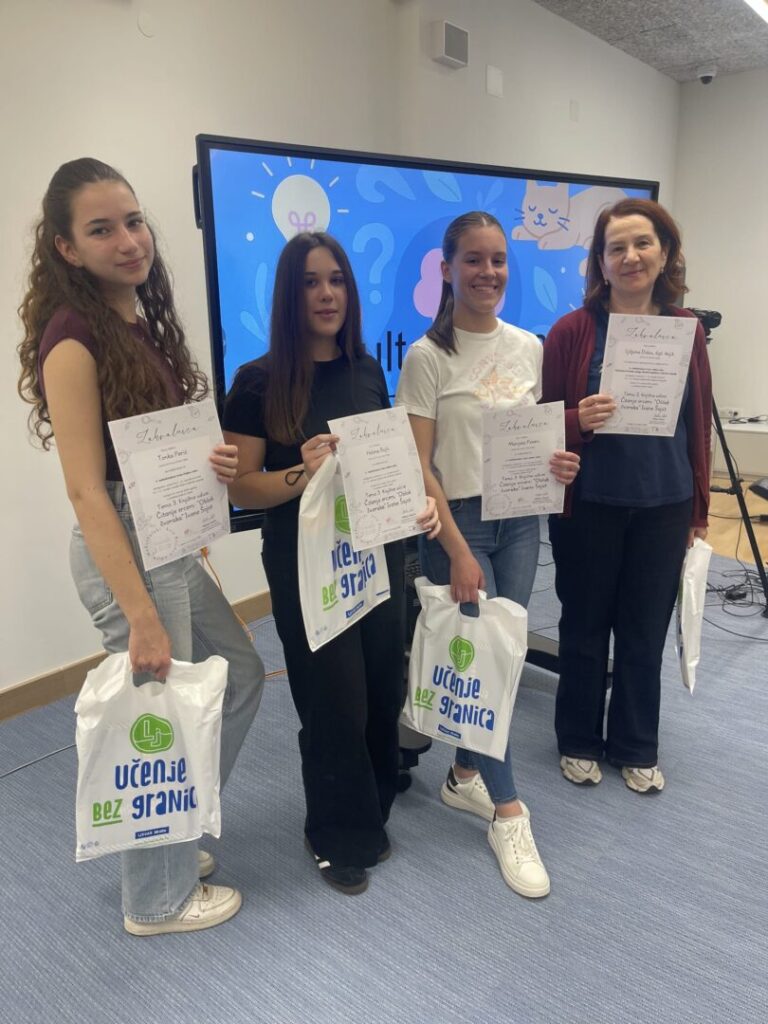 U Gradskoj knjižnici Zadar održan je 3. međuškolski kviz „Knjižna udica” na kojem su sudjelovale i učenice 7. razreda naše škole Marijeta Petani, Helena Bajlo i Tonka Perić u pratnji knjižničarke Ljiljane Didov. Tema natjecanja bio je roman za mlade „Oblak čvoraka” hrvatske spisateljice Ivone Šojat. U kvizu je sudjelovalo deset ekipa iz osnovnih i srednjih škola. Osim u natjecanju, učenici su sudjelovali i u online susretu s autoricom romana. Svi sudionici nagrađeni su besplatnim članarinama u Gradskoj knjižnici Zadar, a pobjednici i knjigama Naklade Ljevak.