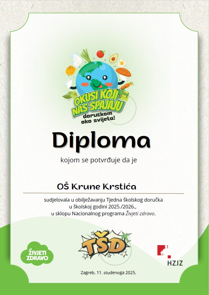 Redovita i zdrava prehrana ključna je za uspjeh u učenju i razvoju djece. Zahvaljujemo na suradnji u stvaranju zdravih prehrambenih navika kod naših učenika.