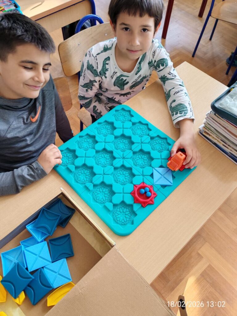 U produženom boravku 18.2.2026. održana je prva u nizu radionica. Učenici 2. razreda produženog boravka su vrlo aktivno tijekom igre učili kako planirati korake, rješavati probleme i primjenjivati osnovne principe programiranja.